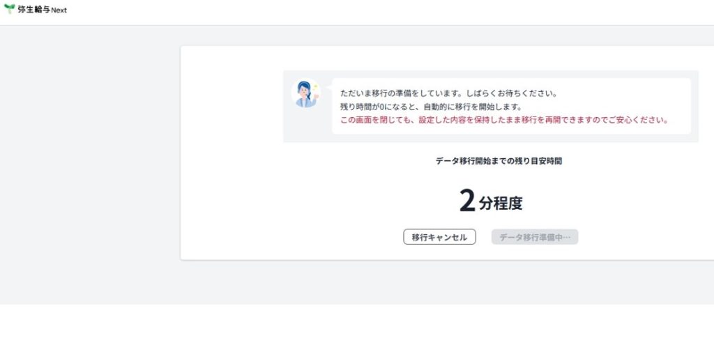 ただし、こちらは弥生給与Next上で移行が行われている時間です。